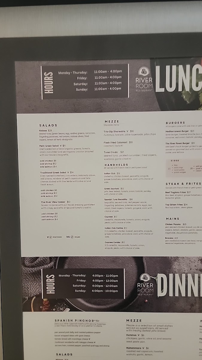 The menu offers an array of delicious options, from tantalizing Starters like the Spanish Pinchos to robust Soups with today’s Soup of the Day. For steak lovers, the highlight is undoubtedly the Beef Tagliata Frites, a meticulously prepared dish at CA$27.00, or the exquisite Top Sirloin Frites for CA$34.00. With tender cuts cooked to perfection, these dishes promise to satisfy even the most discerning palates. Many patrons have noted that the service at River Room is exceptional, with staff members attentive to every need, ensuring a seamless dining experience.